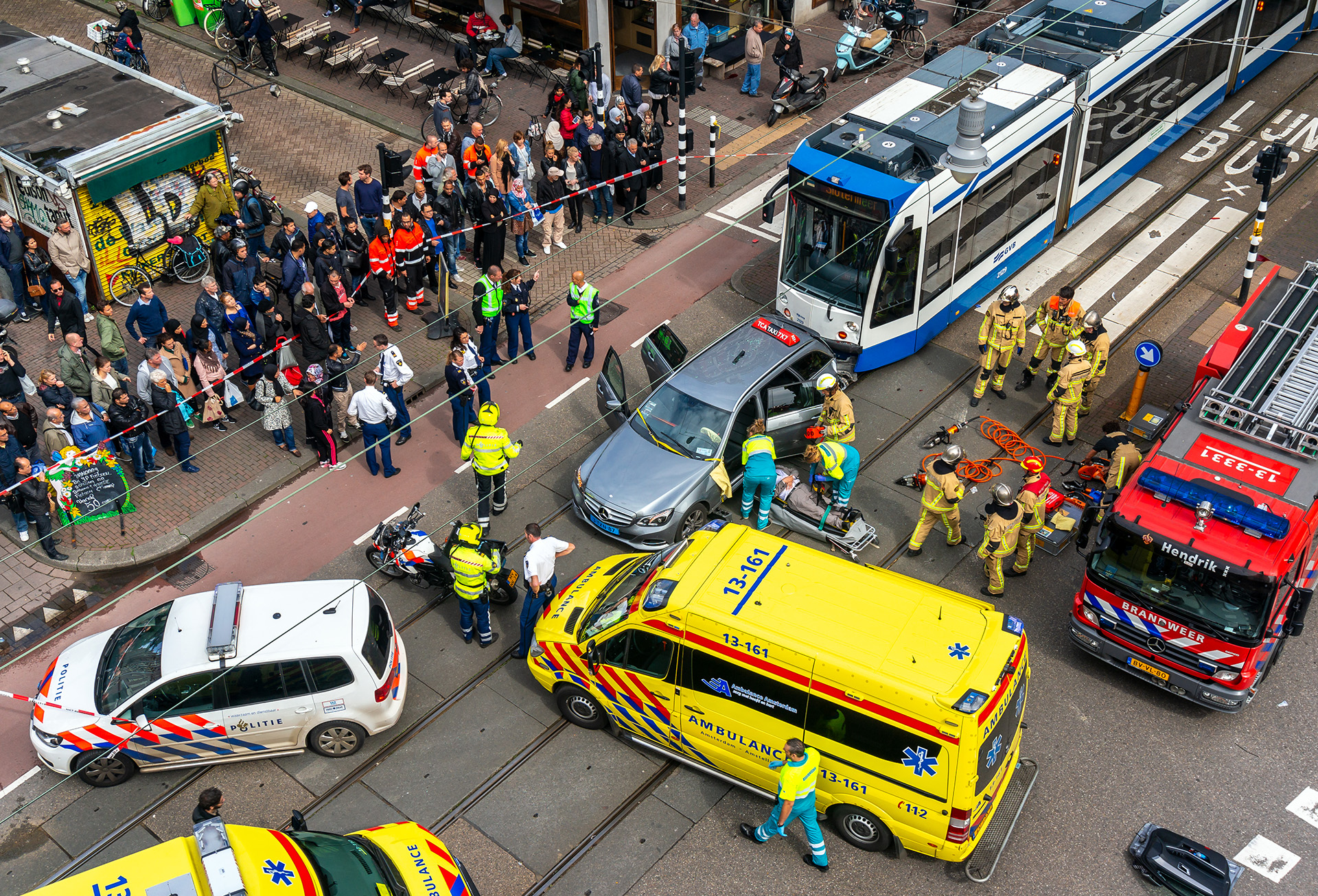 Soms betekent dat samenwerken met de traumahelikopter. “Als een situatie vraagt om extra medische expertise, wordt een arts ingevlogen.” Ook politie en brandweer zijn vaak betrokken. “De politie helpt met onze veiligheid, en de brandweer schakelen we in bij complexe reddingen, zoals wanneer iemand vastzit in een autowrak of een instabiel gebouw.”